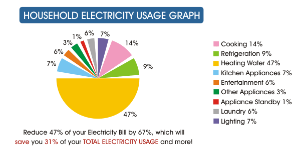 A domestic hot water heat pump is a very efficient water heating device. It uses a small amount of electricity to produce up to four times more heat energy. So by connecting an heat pump to your existing hot water cylinder you can divide your hot water electrical consumption by up to four. Unlike a solar geyser, a heat pump is not directly dependent on the sun and therefore it can operate day and night, winter and summers, ensuring the highest possible saving. Heating water at 1/3 of the price.